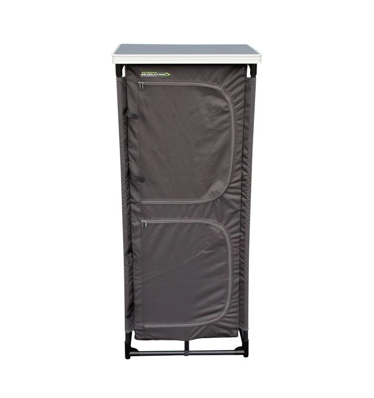 The Milano Camp Wardrobe is a spacious storage cupboard featuring 4 level, twin compartment shelving with rigid shelf inserts and zip back doors with handy external side pockets. Perfect for storing clothing and other camping articles. The sturdy easy erect construction simply pulls apart and folds down flat so it can be transported and stored compact in its own storage carry bag. Perfect for Tents and Awnings where space is at a premium.