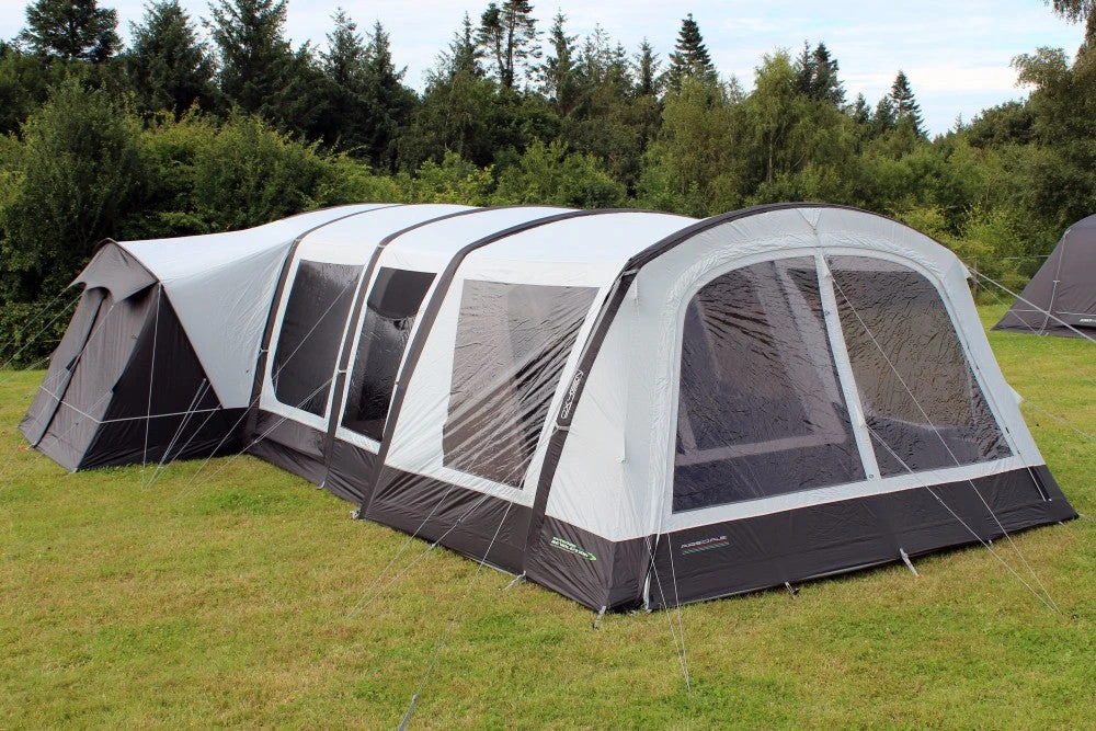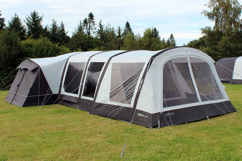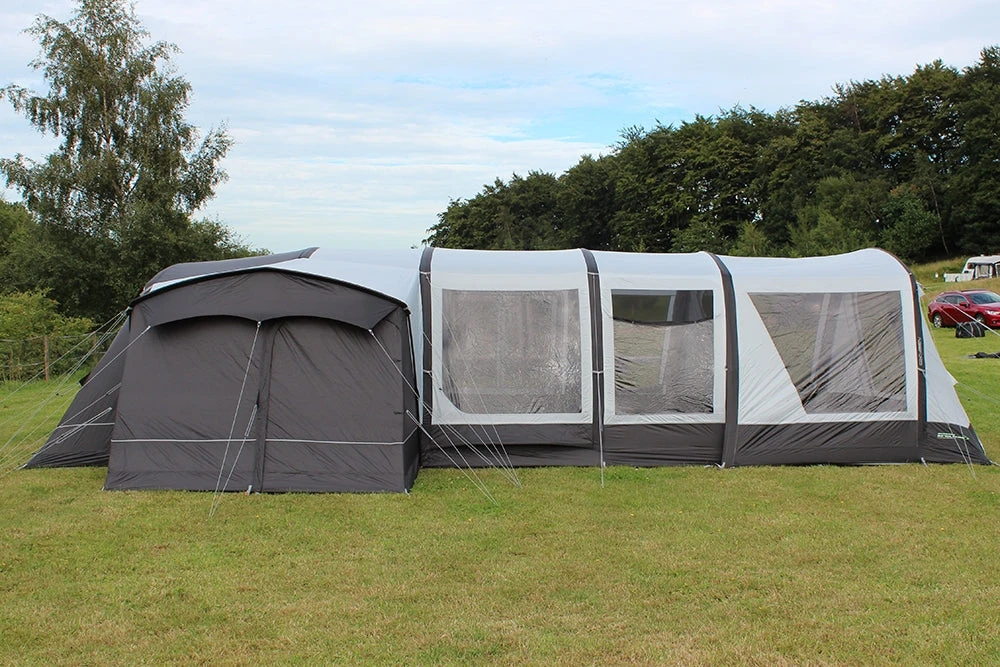 New for 2021 is the fully enclosable Airedale Front Porch Extension, which zips directly onto the front of our larger Airedale models. There are 2 variations available to match specific tents, this particular model is designed to fit the Airedale 6.0S & Airedale 6.0SE. This extension considerably extends usable utility space from the integral front porch, and builds on the excellent vista of the outside world through an enclosed windowed multi-position front door panel. It can be effortlessly pitched using our Oxygen Air Frame System, comprising a single point inflation high-pressure air tube, the famed Dynamic Speed Valve and an exclusive Pressure Relief Valve. A ‘bath-tub’ toggle-in groundsheet is included as well as a bag of steel ground pegs, high visibility guylines, and fixings to attach Storm Straps.
